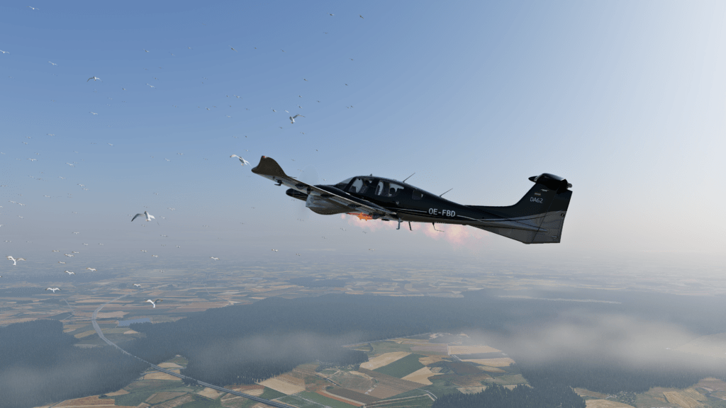 Die gibt es schon länger in X-Plane, ist Bestandteil der Failures. Über die Ausfälle kann man einen Vogelschlag simulieren.