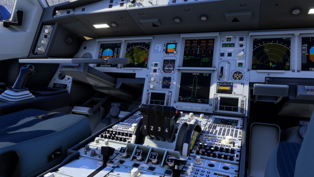 Die Systemsimulation umfasst detaillierte Nachbildungen der hydromechanischen und elektrischen Komponenten. Ein zentrales Merkmal ist das Fehlersystem mit 303 verschiedenen Szenarien, die manuell oder zufallsbasiert ausgelöst werden können. Funktionale Cockpit-Resets ermöglichen dabei das Abarbeiten von Fehlern nach realem Vorbild. Auch die Bordelektronik wurde tiefgreifend modelliert: Drei unabhängige MCDUs steuern zwei autarke Autopiloten an, während das ADIRU-Modell kleinste Messabweichungen zwischen der Kapitäns- und Copilotenseite simuliert.