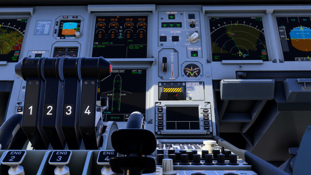 Das Treibstoffsystem simuliert alle acht Tanks inklusive Crossfeed, Jettison-Funktion und automatischer Schwerpunktkontrolle im Reiseflug, während ein thermisches Bremsenmodell den Wärmeaustausch zwischen Belägen und Scheiben unter Berücksichtigung der Sensorverzögerung abbildet. In Sachen Avionik stehen Unterstützung für Hoppie CPDLC, ein direkter SimBrief-Import in das FMGS sowie eine auf der MSFS-Map-API basierende Taxi-Kamera zur Verfügung.