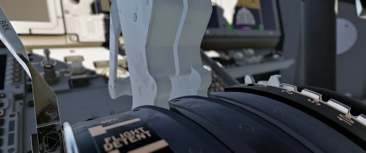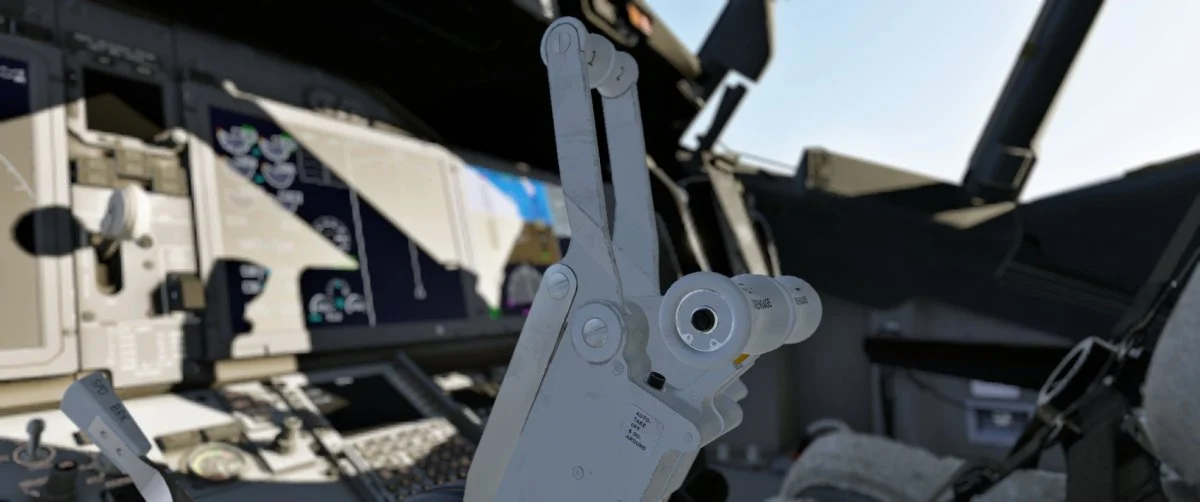 Hebel bewegen sich jetzt mit realistischer Geschwindigkeit und realistischem Bewegungsweg. Die Schubhebel folgen präzisen Führungen, die Trimmräder drehen sich mit der korrekten Geschwindigkeit und verfügen über einen ausziehbaren Griff für manuelles Trimmen. Die Bewegung des Klappenhebels folgt den typischen Raststellungen.