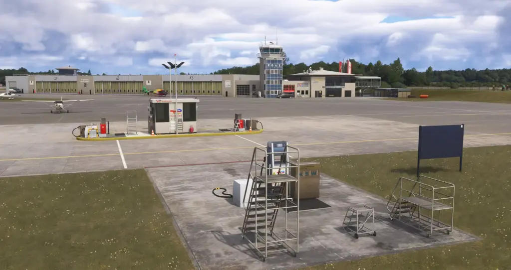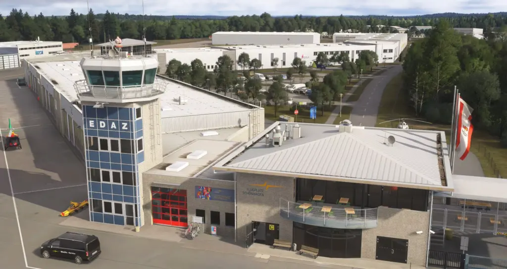 Die Szenerie deckt das komplette Areal des Verkehrslandeplatzes ab und basiert auf hochaufgelösten Drohnenaufnahmen aus dem Jahr 2024. Das Bodenlayout, die Runway mit realistischer Neigung, sowie die detailliert modellierten Gebäude und Hangars – teilweise mit Innenansicht – wurden entsprechend überarbeitet. Die Umgebung wurde mit einem angepassten Mesh versehen, das eine stimmige Einbettung in die Landschaft des Nuthe-Nieplitz-Naturparks sicherstellt.