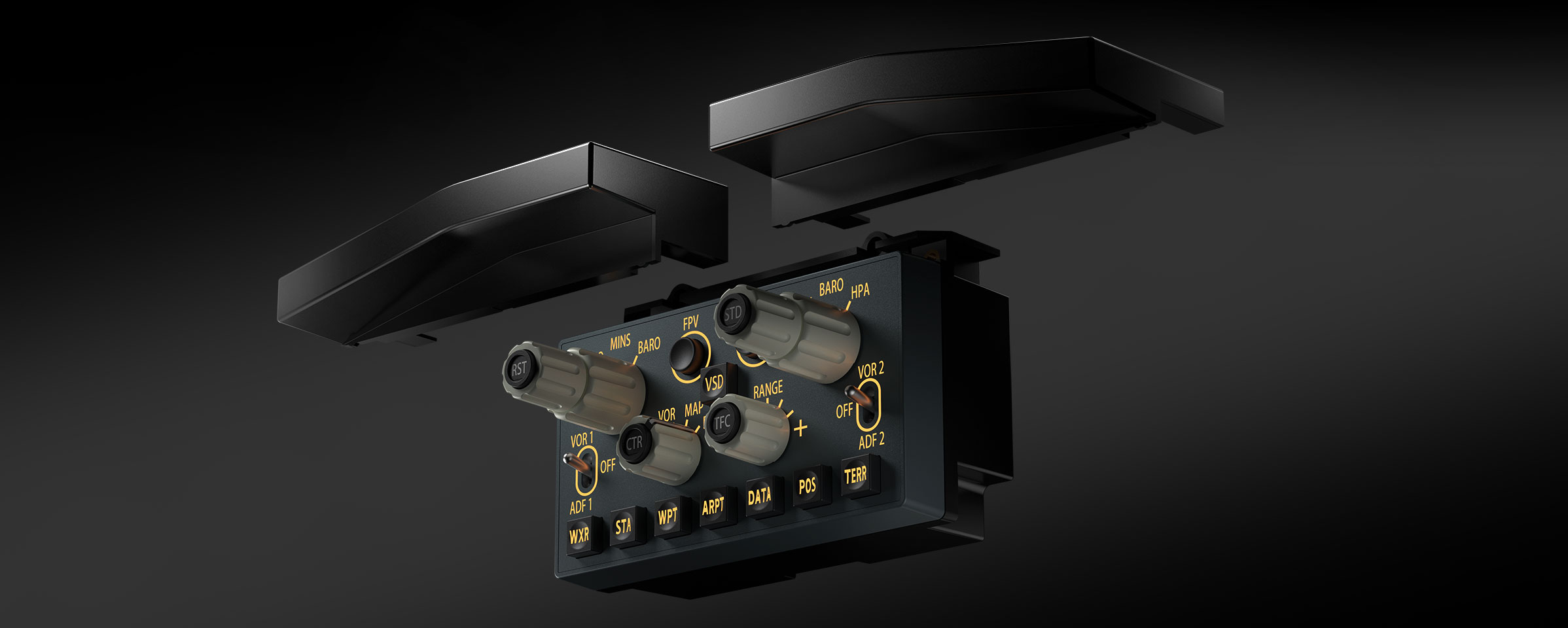 Ein besonderer Clou ist die flexible Konstruktion des Glareshields: Durch einen einfachen Umbau lässt sich das Panel sowohl auf der linken als auch auf der rechten Seite verwenden – ein deutlicher Vorteil wenn nur begrenzer Platz verfügbar ist oder man gezielt nur die CPT. oder FO- Seite nutzen möchte.