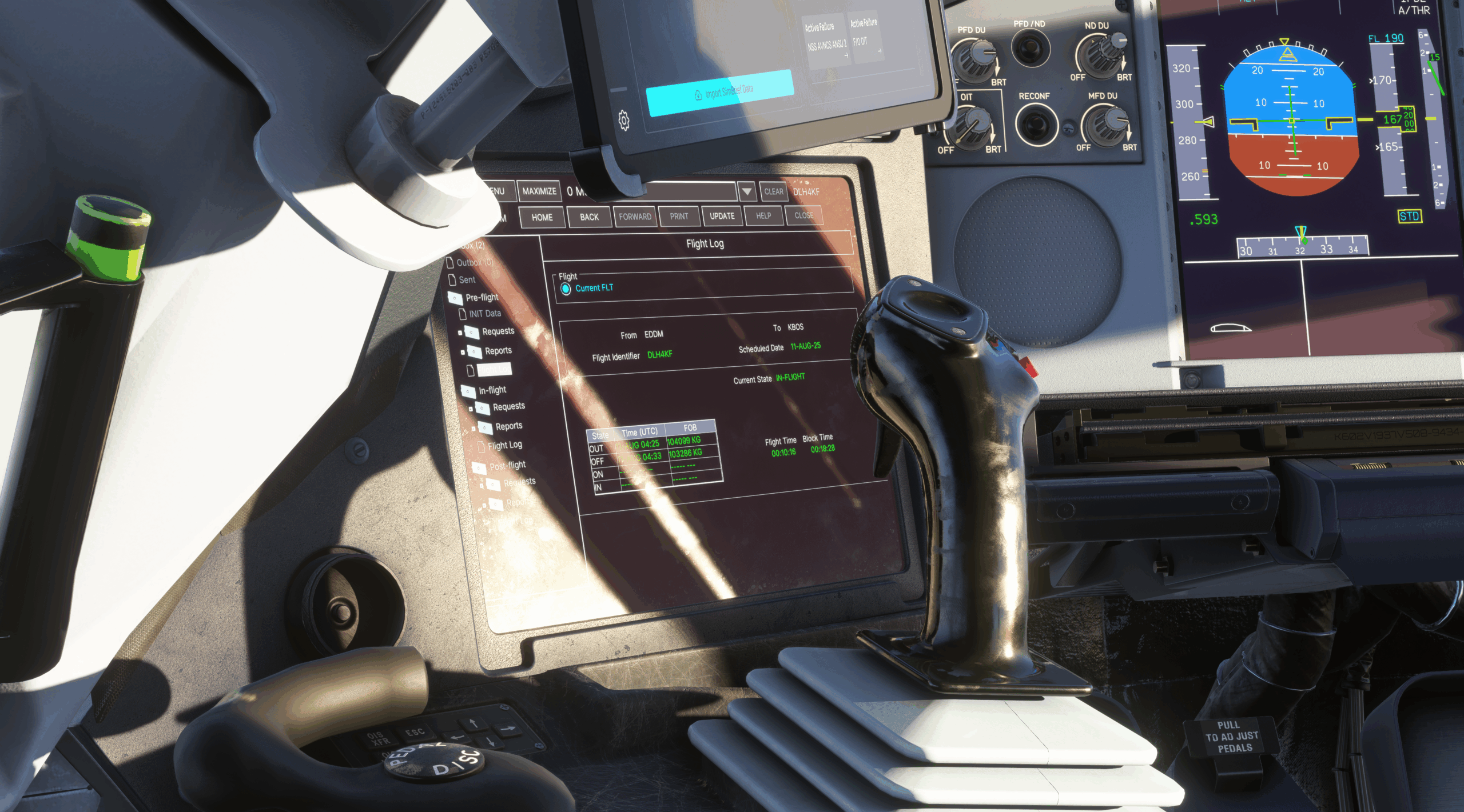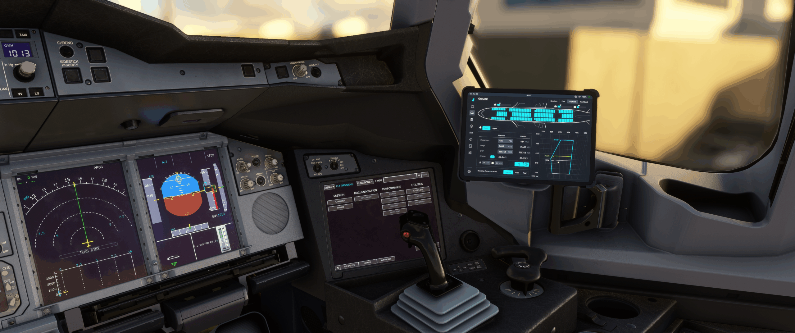 Mit einem größeren Update im Juni wurde ebenfalls das Cockpit weiter überarbeitet. So wurden viele Anpassungen am 3D Modell vorgenommen, Fehler beseitigt die EFB Positionen angepasst und das EFB und OIS des First Officers aktiviert. Piloten welche also gerne vom rechten Platz im Cockpit fliegen dürfte das tatsächlich erfreuen! Außerdem kann man jetzt den AP Disconnect Button des Joysticks anklicken und somit bedienen.