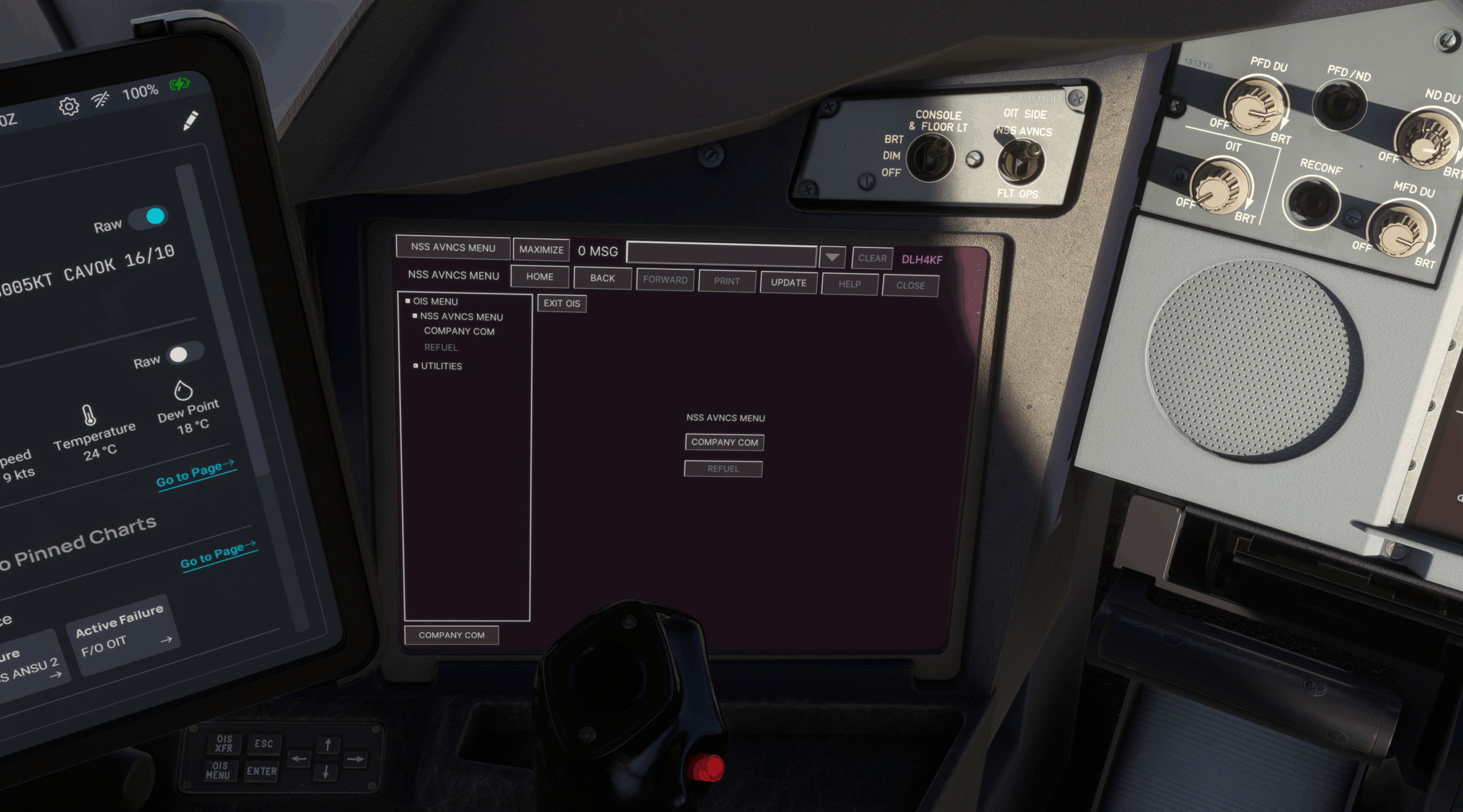 „Stille Wasser sind tief“ beschreibt sehr treffend das Highlight des aktuellen Fortschrittsberichts: die NSS AVNCS-Seite des OIS. Während die erste Implementierung des OIS sich auf die FLT OPS-Seite fokussierte, hat nun die Arbeit an der NSS AVNCS-Seite begonnen. Über den OIT SIDE-Schalter oberhalb der OIT-Displays ist der Zugriff auf das System möglich, das den Großteil der nicht-ATC-Kommunikation und organisatorischen Abläufe abdeckt.