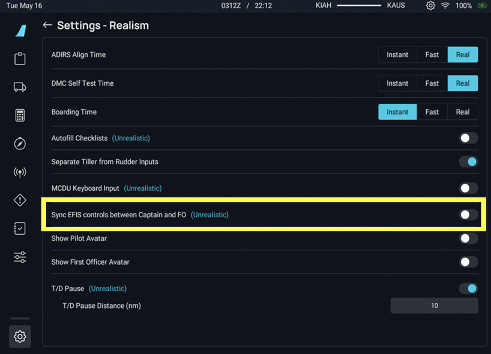 • Option für Sync EFIS Controls (Captain/FO) zur Vereinfachung von Single-Pilot-Operationen via flyPad.