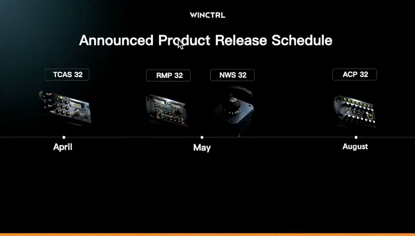 Auch für den Release Schedule für die weiteren angekündigten Produkte, liefert Winctrl ein kleines Update. So soll im April das TCAS32 Panel, im Mai das RMP32 Radio Panel und der NWS32 Tiller, sowie im August das ACP32 Panel für die A32S-Reihe im Shop erscheinen.