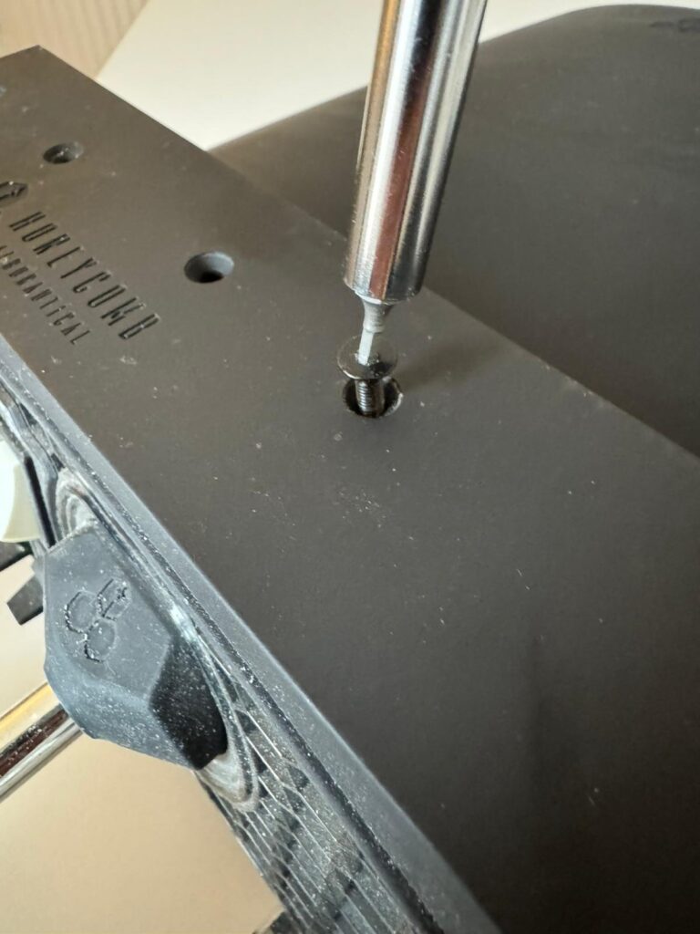 Als ersten Schritt löst man die Schrauben auf der Oberseite des Alphas. Dafür wird ein kleiner Torx-Schraubendreher benötigt.