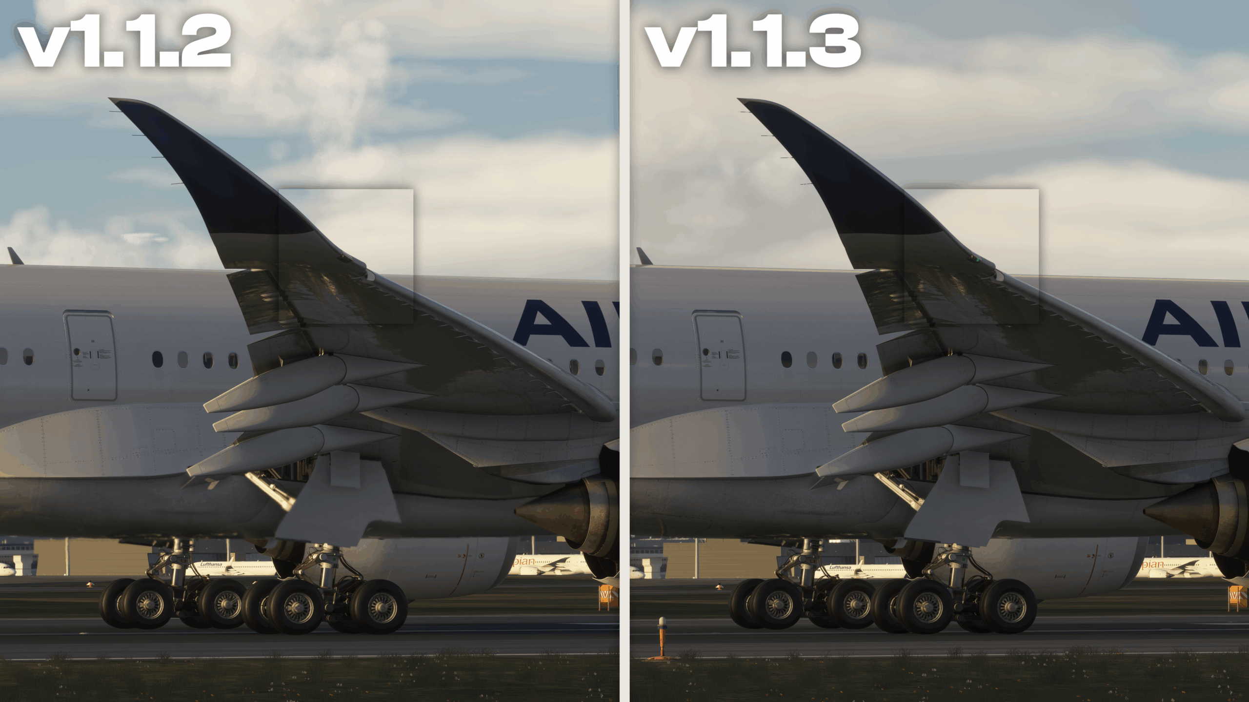 Ebenfalls korrigiert wurde ein Problem, bei dem Klappengeräusche entweder fehlten oder kaum hörbar waren. Jetzt werden diese Geräusche bei allen Änderungen der Flap-Konfiguration klar und realistisch wiedergegeben.