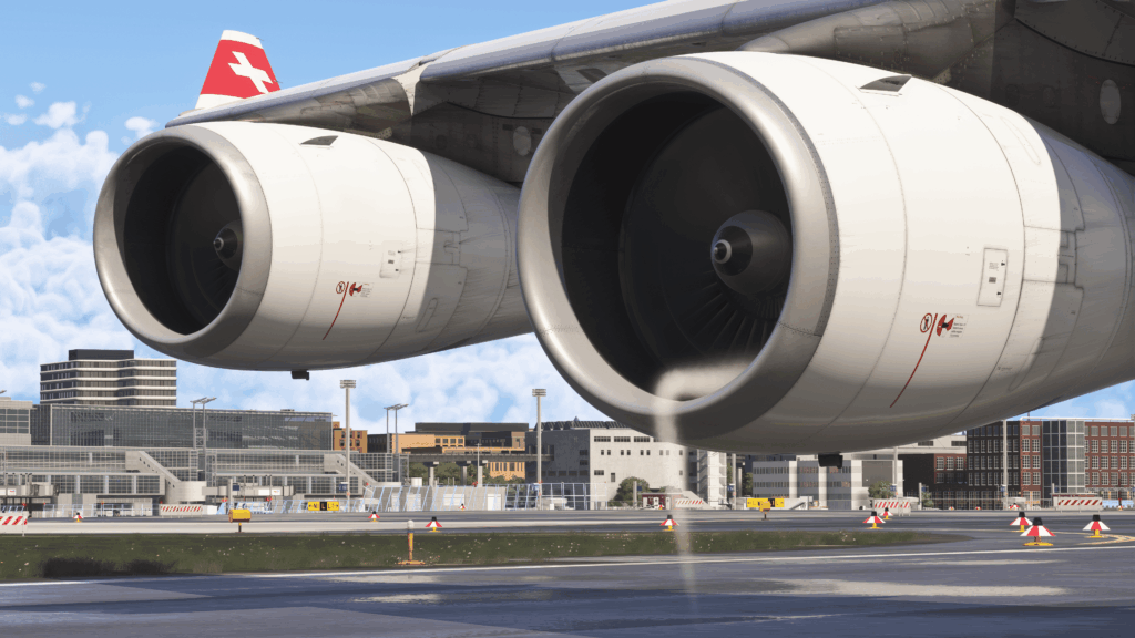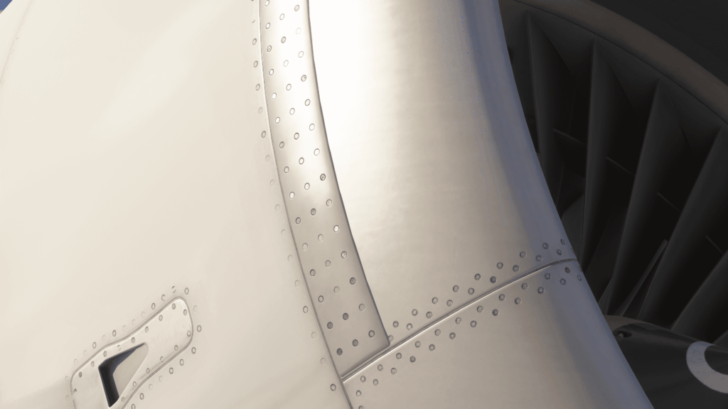 Die CFM56-Triebwerke wurden detailliert umgesetzt und besitzen individuell variierende Texturen. Die Cowls sind für Wartungsarbeiten zu öffnen. Zudem kommt erstmals der MSFS24-exklusive Spinner-Shader zum Einsatz, der laut iniBuilds eine flüssigere und realistischere Darstellung als bisherige Techniken bietet.