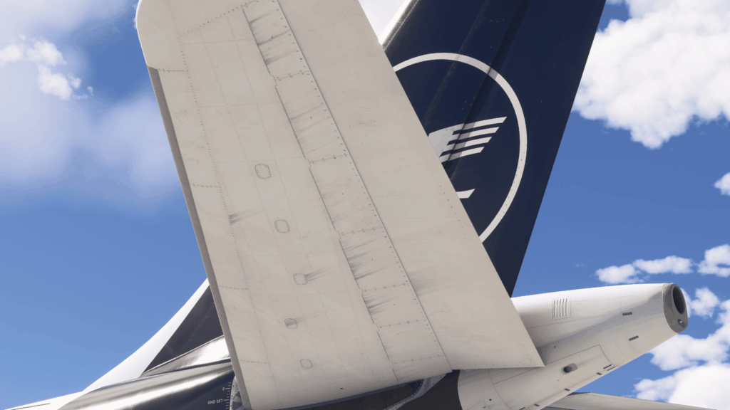 Ein Wear-&-Tear-System simuliert die natürliche Alterung des Flugzeugs während des Betriebs. So entstehen mit zunehmenden Flugstunden: