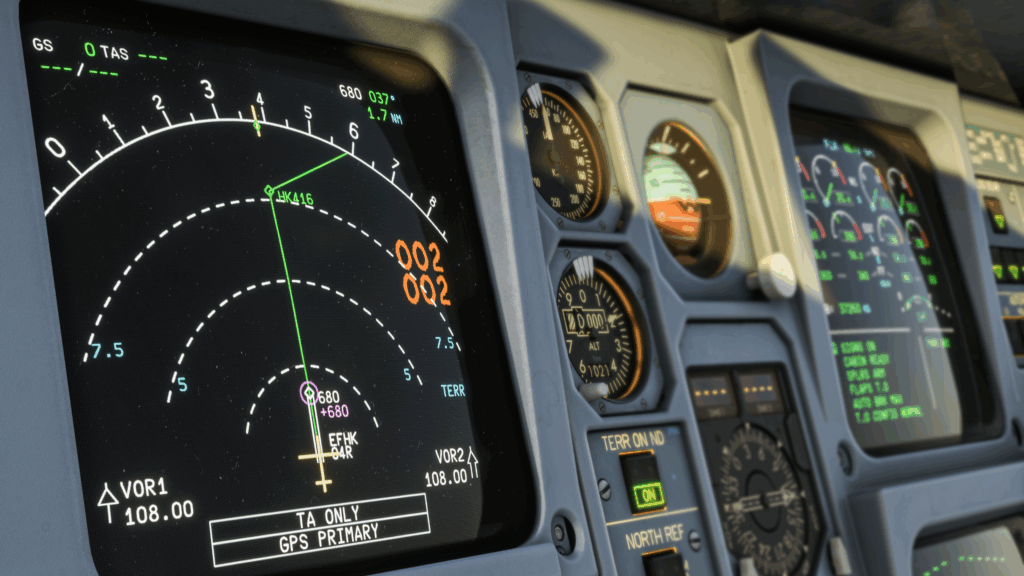 Bei den Systemen kündigt iniBuilds eine vollständige Umsetzung aller Kernsysteme an. Dazu gehören ein eigenes FMS mit LNAV/VNAV, SIDs, STARs und SEC-Plänen ebenso wie hydraulische und elektrische Systeme. Hinzu kommen spezielle Funktionen wie ein funktionsfähiger Borddrucker, die Caging-Mechanik des Standby-Attitude-Indikators oder die Para-Visual Indicator-Anzeige im EIS1-Cockpit. Über die ACARS-Integration sollen auch Datalink-Funktionen verfügbar sein, darunter Clearance- und Wetteranfragen sowie Freitextnachrichten. Weitere Features sind die Anzeige von MORA-Daten auf dem ND, eine überarbeitete Autosave-Funktion, die Unterschiede zwischen EIS1- und EIS2-Logik sowie eine Kabinentemperatursimulation, die auf Pack-Leistung, Außentemperatur und Türstatus reagiert.