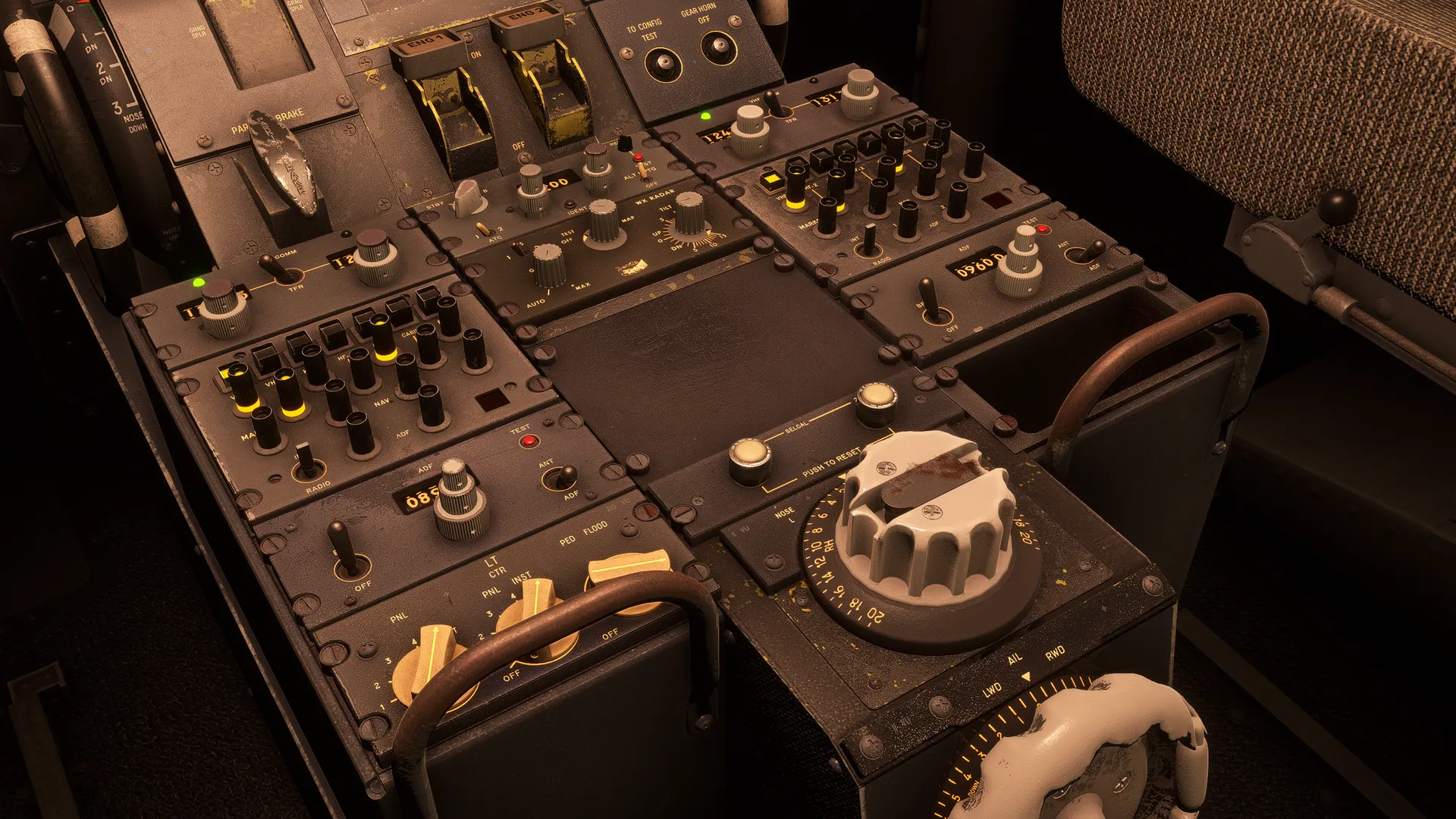 Interessant ist vor allem der historische Charakter des Flightdecks. Anders als moderne Airliner mit überwiegend kühlen LED-Lichtquellen setzt die A300B4 laut Just Flight auf den warmweißen Eindruck der 1970er-Jahre. Hierzu zählen fluoreszierende Röhren, hinterleuchtete Panels und subtile Reflexionen auf beanspruchten Flächen wie Schubhebeln, Center Pedestal und dem ausziehbaren Tisch des Flight Engineers. Gerade diese Details spielen für die visuelle Glaubwürdigkeit des Add-ons eine zentrale Rolle.