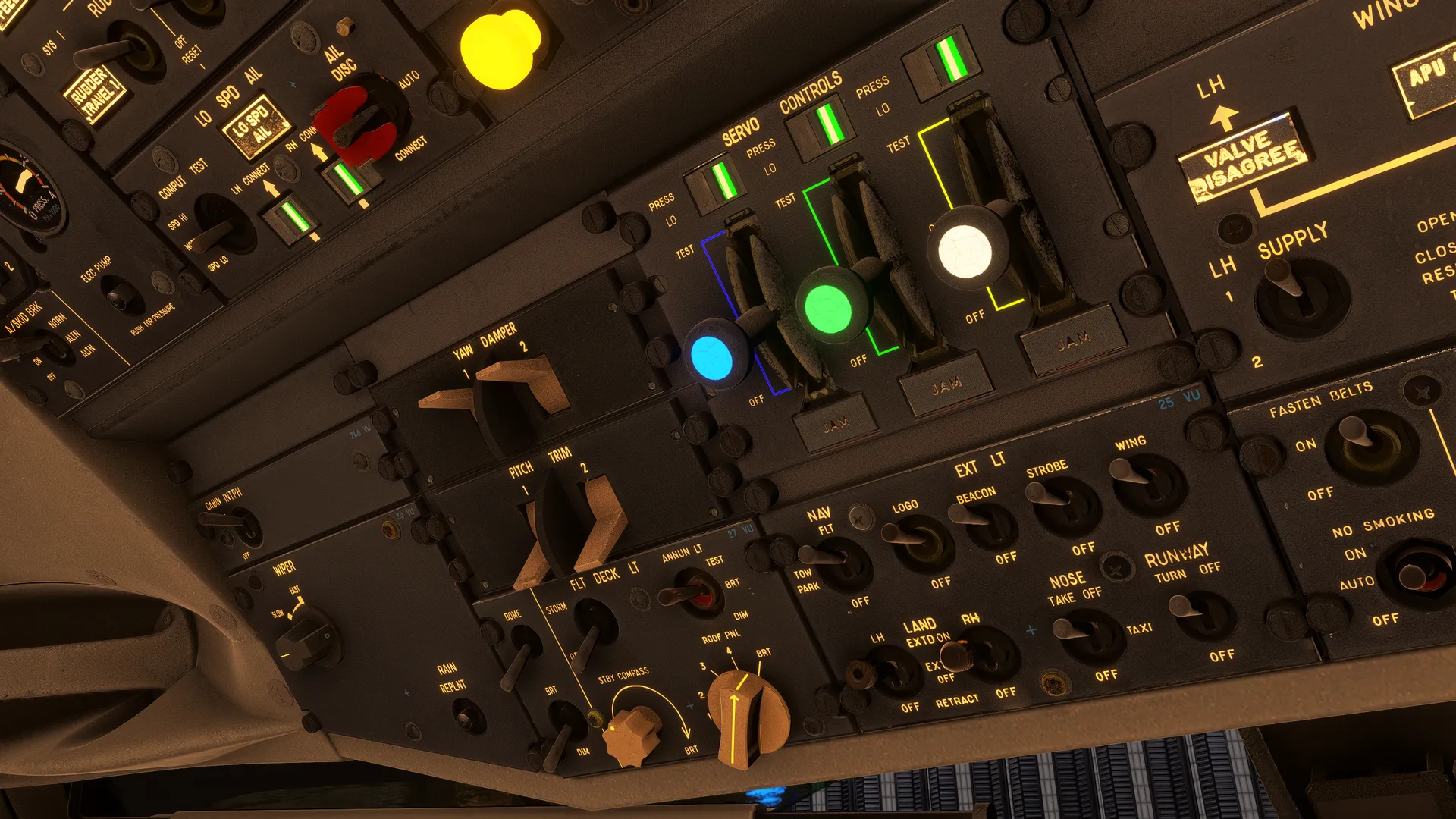 Just Flight verweist dabei nicht nur auf die technische Logik des Systems, sondern auch auf den hohen Abstimmungsaufwand bei der Darstellung selbst. Simuliert werden müssten unter anderem elektrische Versorgungsquellen, Dimmfunktionen und Failure-Logik. Hinzu komme die Feinarbeit bei Intensität, Abstrahlwinkel und Farbton. Allein im Cockpit seien rund 20 einzelne Leuchtstoffröhren und Lampen zu berücksichtigen.