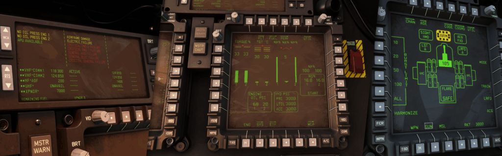 Die Waffensteuerung erfolgt über eine eigens programmierte MFD-Oberfläche. Ein ARM/SAFE-Schalter muss vor Einsatz der Systeme aktiviert werden, was laut Entwickler einen zusätzlichen Realismusaspekt darstellen soll. Visuelle und akustische Effekte wurden entfernungs- und ereignisbasiert integriert.