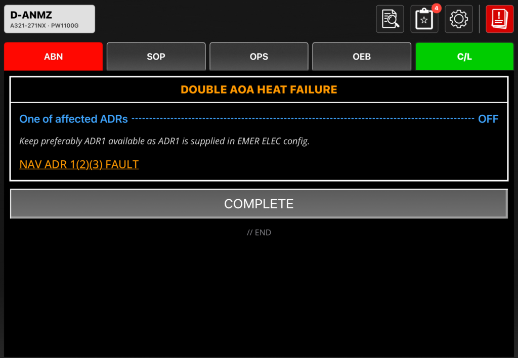simREF ist vielleicht keine App für „mal eben schnell fliegen“. Also dann kommt sie wahrscheinlich nicht voll zum Einsatz, außer im Checklist-Reiter. Aber tja, so ist es vielleicht ja auch bei echten Airlines. Denn so viele Failures sind hier auch kein Alltag. SimREF ist eine Dokumenten- und Workflow-App für Nerds, für VA-Piloten, für Homecockpit-Builder – und für alle, die im Simulator zumindest gelegentlich so tun wollen, als wäre es ernst. Es kann auch durchaus Spaß bringen, während des Fluges auch so mal durch die App zu gehen. Und zu sehen, was man hoffentlich nicht anwenden muss, hihi.