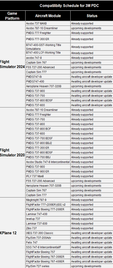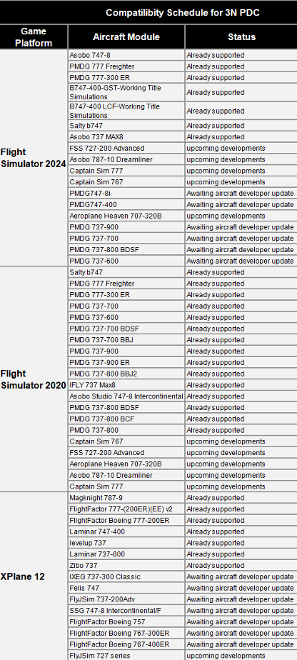 Weiterhin sollen laut WINWING natürlich noch andere Flugzeug AddOns unterstützt werden. Somit könnt ihr euer EFIS nicht nur mit einer X-Plane oder MSFS 737 Variante nutzen. Hier mal eine Liste der gängigsten: