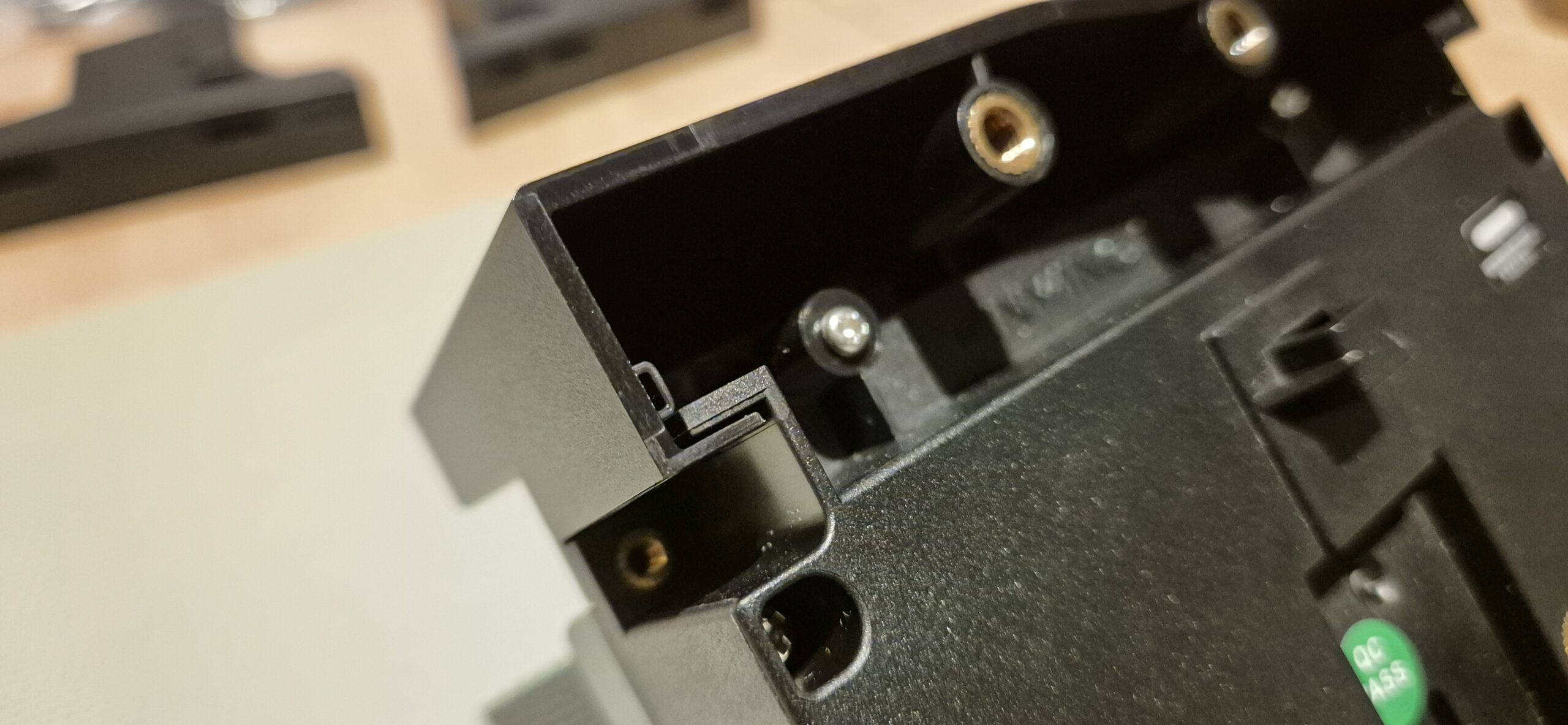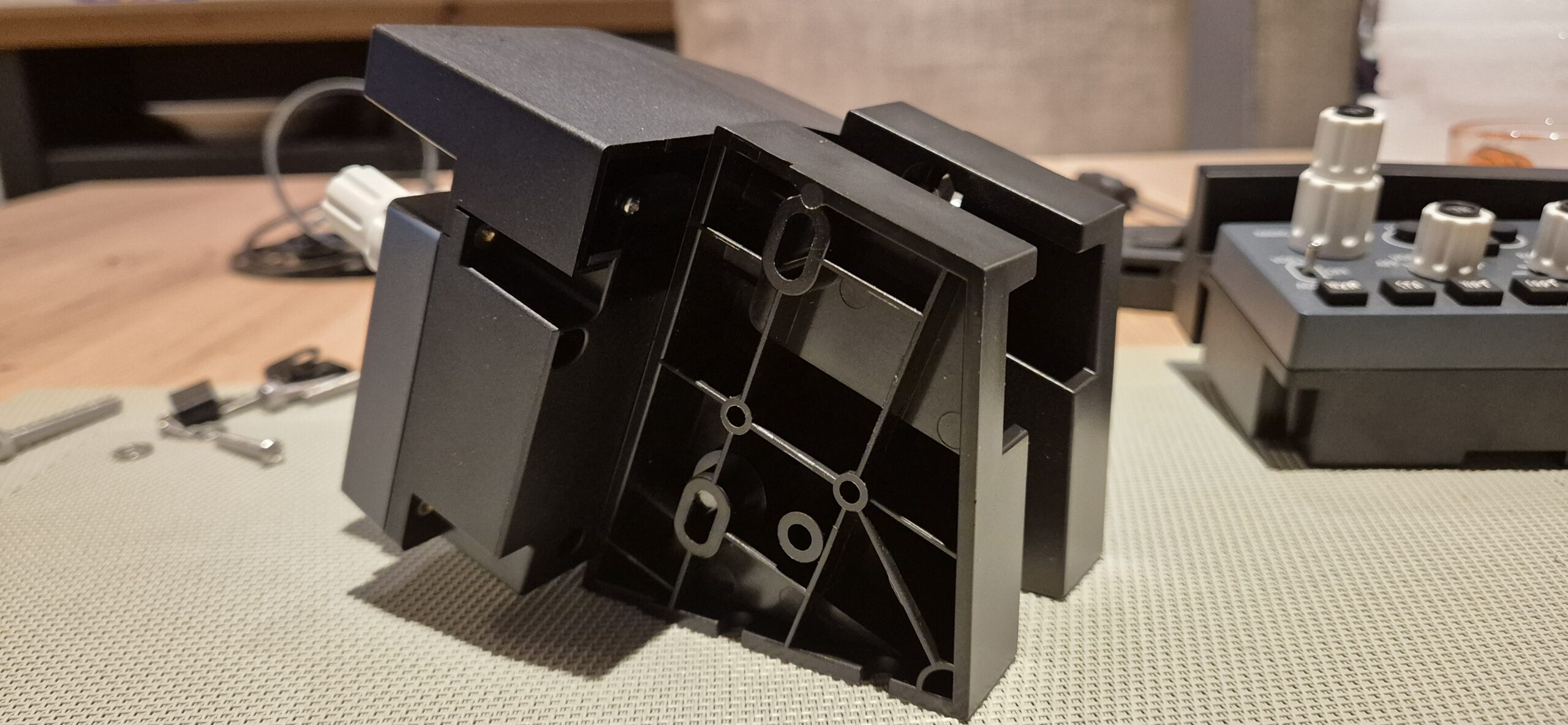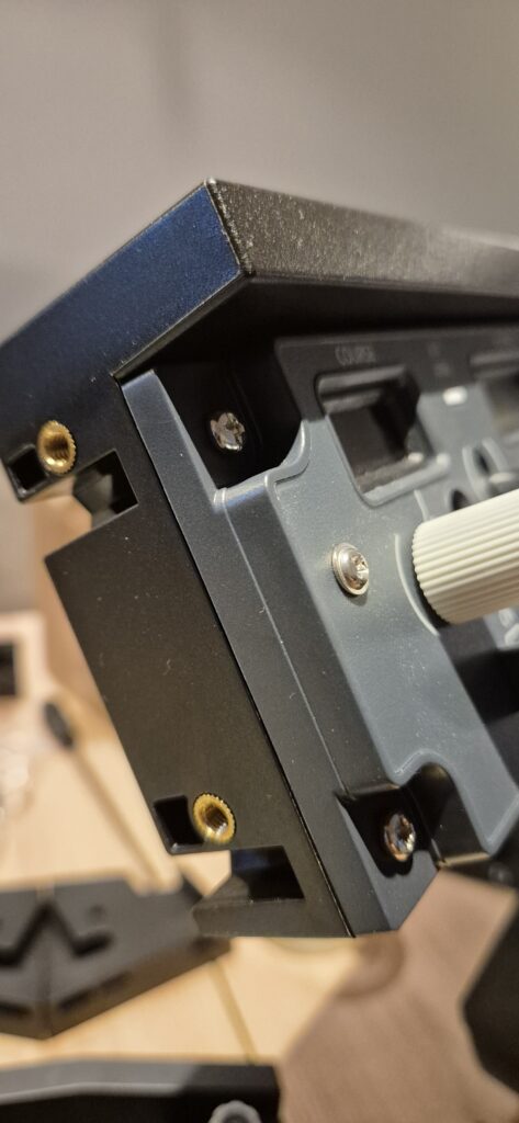 Mein MCP ist an einer 3D gedruckten Halterung von ETSY auf meinem Thrustmaster Yoke verbaut, also muss ich mich um die mitgelieferten Standfüße nicht weiter kümmern und kann die beiden Teile einfach anschrauben.