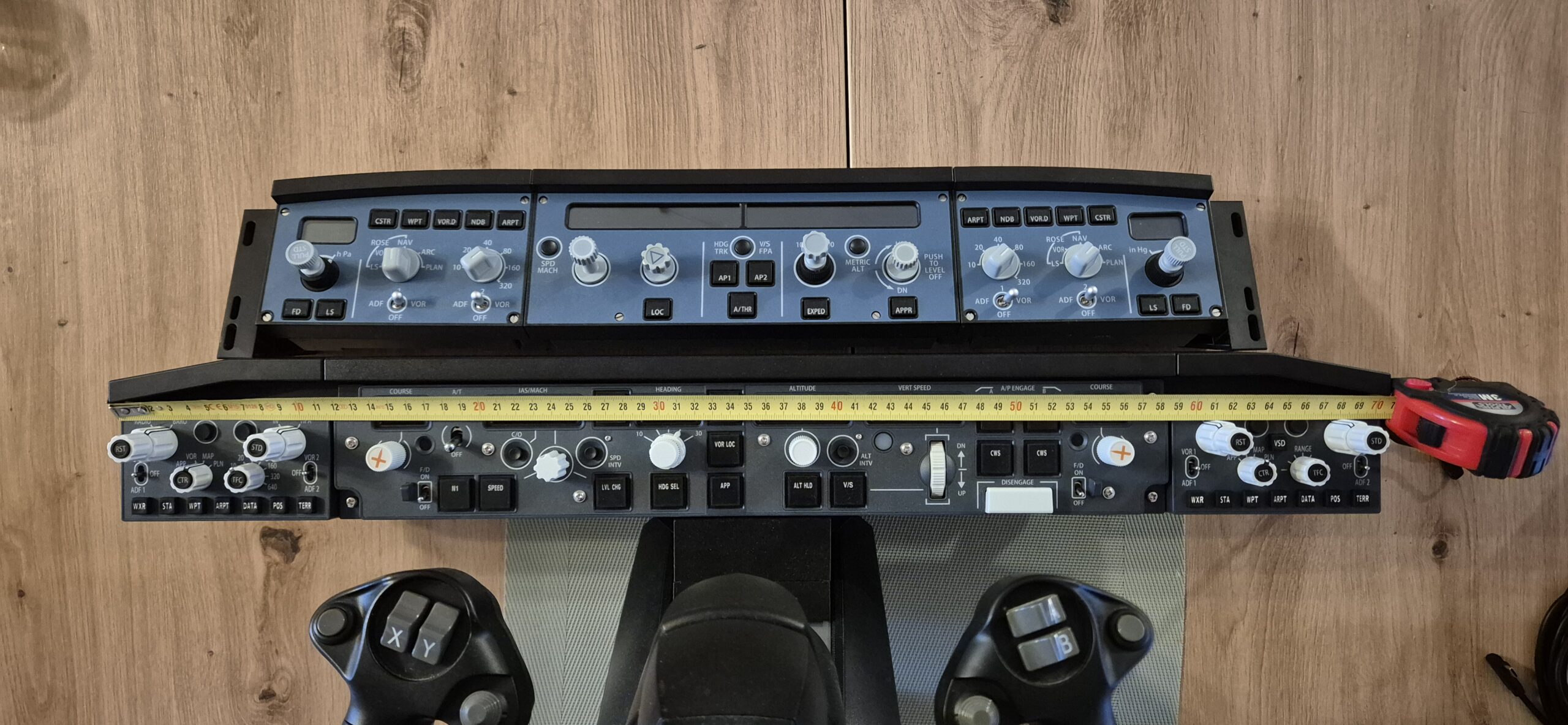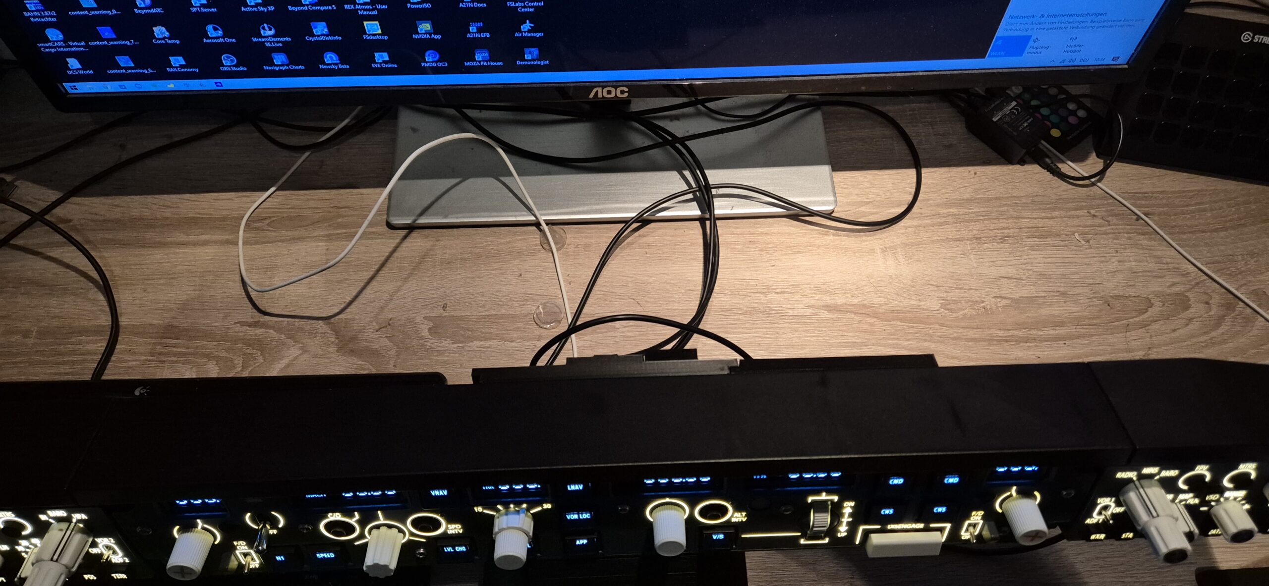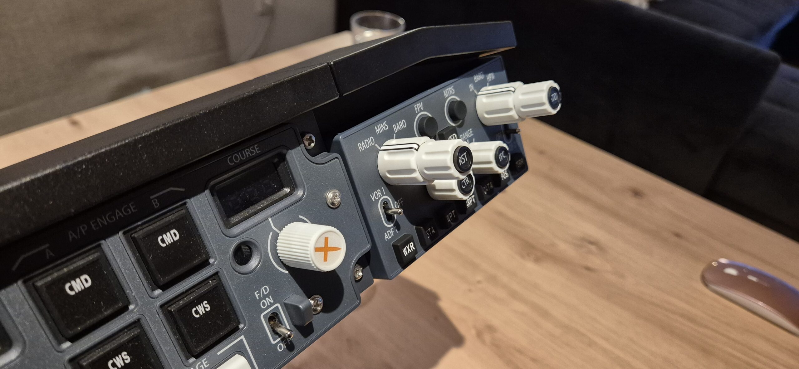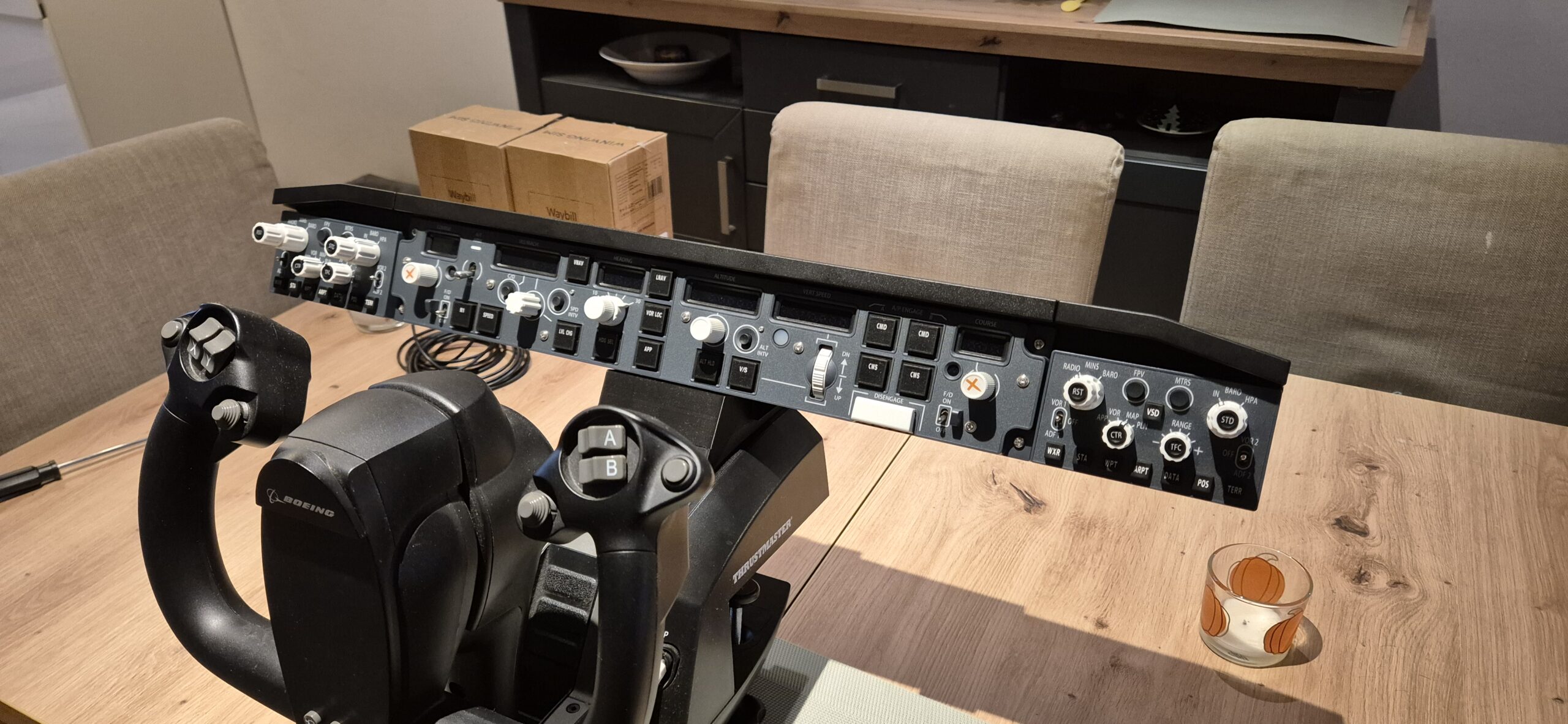 Danke für den ausführlichen Bericht! Ich habe das Gerät auch im Einsatz, warte aber noch auf das EFIS. Ich habe mir einen USB Verteiler gegönnt, da ich auch noch andere Geräte laufen lasse. Das Problem mit dem Platz habe ich gelöst indem ich mir Halter konstruiert und gedruckt habe die das Panel über der Tastatur schweben lassen. Sonst wäre es durch den 1:1 Maßstab knapp. Funktion und Haptik über alle Kritik erhaben, wie schon dei der MCDU.