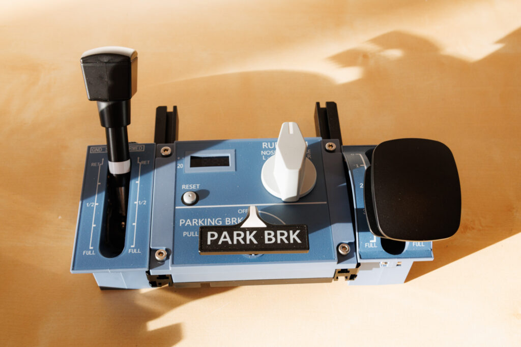 Und auch nachdem all diese Hindernisse umschifft sind, zeigt sich dann beim ersten Testflug relativ schnell, dass diese Art des Aufbaus einige fundamentale Nachteile hat. Denn zwar kann man nun die Reverse-Achse auf dem Throttle leichter deaktvieren, da das überstehende PAC-Modul hier den nötigen Widerstand liefert. Aber die Benutzung des Spoilers sorgt jedes Mal dafür, dass man den Throttle halb vom Tisch hebt, da dieser zu leicht ist, um ausreichend Gegengewicht zu der notwendigen Kraft für die Betätigung zu haben. Und ähnlich zeigt es sich bei der Parkbremse, die auch gerne dazu neigt, die ganze Einheit vom Tisch hochzuheben.