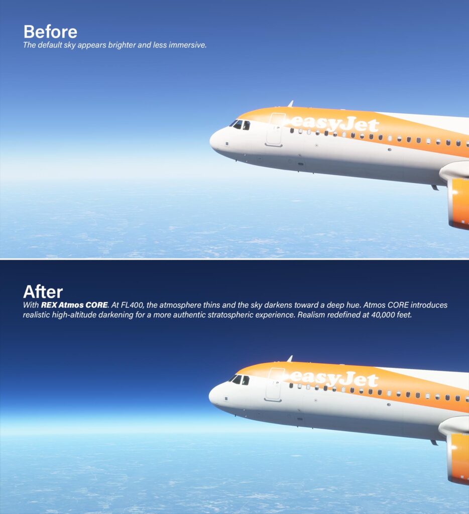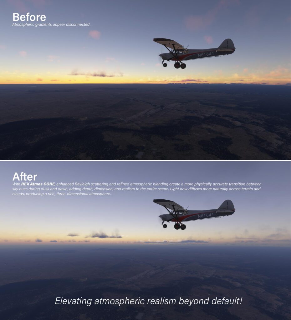Für Anwender ist insbesondere die direkte Integration in die Sim-Engine von Bedeutung: Im Unterschied zu anderen Lösungen, wie etwa ReShade oder ähnlichen Filtern, verarbeitet Atmos CORE dem Hersteller zufolge Änderungen auf System-/Engine-Ebene, sodass Anpassungen unmittelbare visuelle Auswirkungen im laufenden Flug haben.
