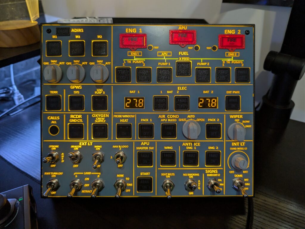 Ich habe man das MiniOverhead von MiniCockpit geholt. Gefühlt spricht darüber niemand, aber zu Unrecht. Durch seine minimalistische Bauweise ist es quasi ein kleines Streamdeck, aber mit Airbusfeeling und Haptik. Wäre auch ein Test wert 😉