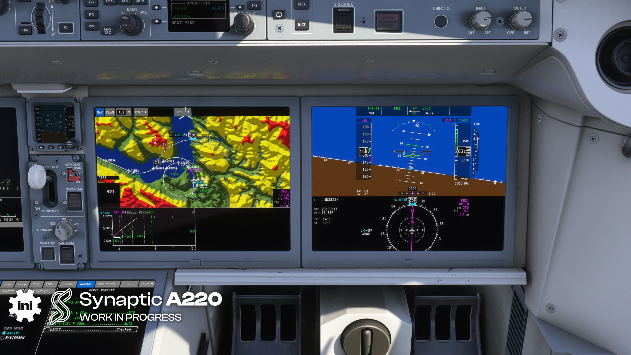 Ein weiterer Fokus liegt auf dem CAS, dem Crew Alerting System – quasi dem ECAM des A220, wenn man so will, und dem INFO System, zu vergleichen mit einem Info-System über MEL Items. Diese beinhalten über 3.350 verschiedene Inputs, welche auch mit den exakten 100ms Verzögerungen des echten Flugzeugs, zu den jeweils korrekten Bedingungen aktiviert werden soll. Hier fehlen an einigen Stellen noch Daten, so Synaptic, man arbeite jedoch daran diese zu füllen.