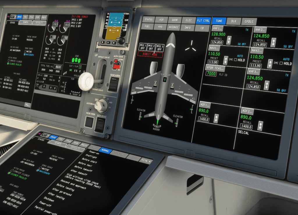 Im Bereich der Systeme konzentriert sich die Entwicklung derzeit auf elektrische Versorgung, Anzeigelogik, Datenpfade und Flugsteuerung inklusive Autopilot. Der aktuelle Stand beinhaltet ein vollständig simuliertes APU-Verhalten mit realistischer Spannungs- und Frequenzsteuerung sowie logischer Netzumschaltung. Dieses Element ist direkt mit den überarbeiteten Hydraulik- und Kraftstoffsystemen verknüpft, die inzwischen auch unter abnormalen Betriebsbedingungen korrekt reagieren.