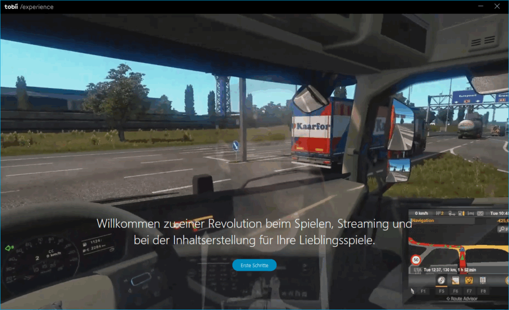 Der Tobii Eye Tracker 5 hängt jetzt unter dem Monitor – aber wie geht es weiter? Um den Tracker voll auszunutzen, benötigt man die von Tobii bereitgestellte Software „Tobii Experience“. Nach dem Download ist die Installation mit wenigen Klicks erledigt, und die Software startet direkt. Anschließend begrüßt uns ein Willkommensbildschirm, der direkt zur Konfiguration des Eye Trackers führt.