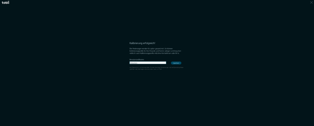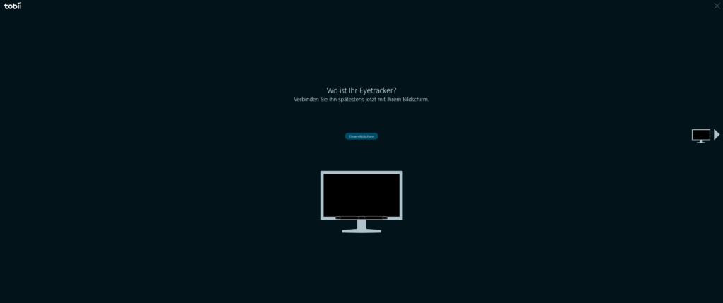 Ein Klick auf „Erste Schritte“ öffnet sofort den Konfigurationsassistenten. Darin richten wir unseren Monitor für die Nutzung des Eye Trackers ein und durchlaufen mehrere Kalibrierungsschritte, um alles optimal einzustellen.