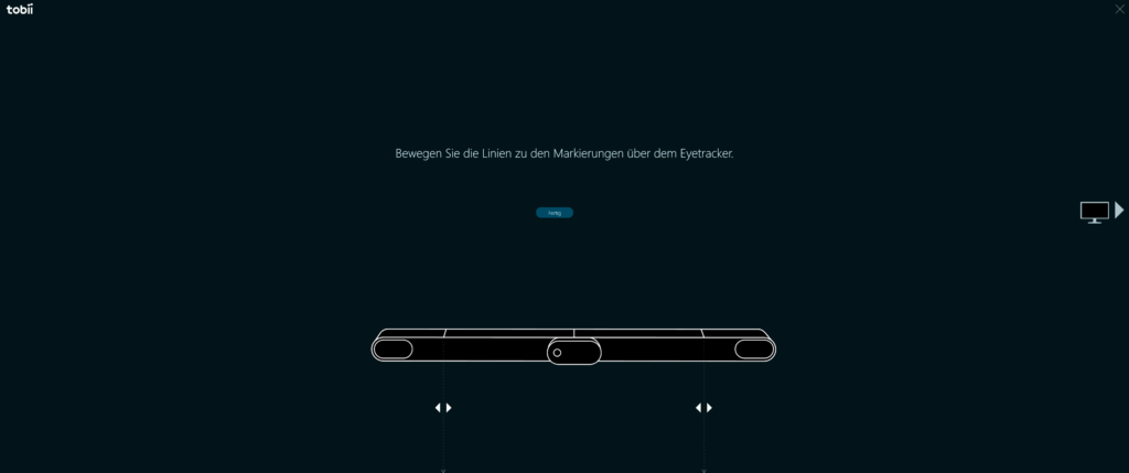 Einen Punkt sollte man an dieser Stelle besonders hervorheben: Während der Kalibrierung wird nach der Position des Eye Trackers gefragt (siehe Bild 2). Mithilfe von Pfeilen muss man hier die exakte Position der kleinen Trackingleiste festlegen.