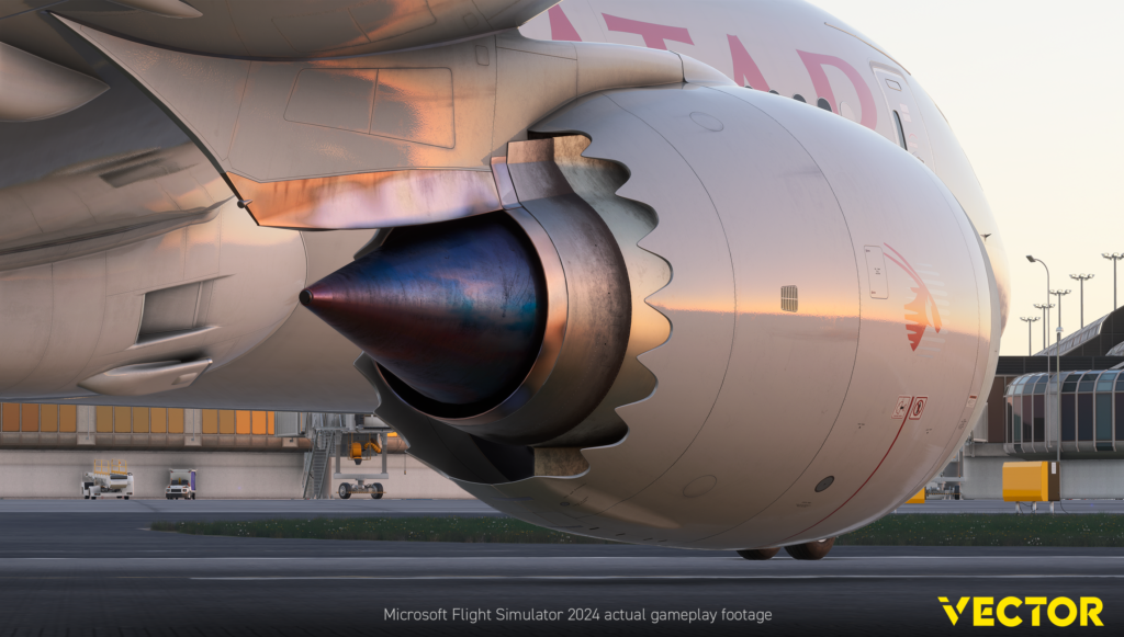 Der erste Teil der Präsentation drehte sich dabei um das Modelling der Maschine. Hier ist der Anspruch die Möglichkeiten des MSFS 2024 auszunutzen und ein möglichst detailliertes Modell zu erstellen. Dieses soll dabei auf einem Niveau sein, dass auch bei einem virtuellen Walk-Around vor dem Abflug alles zu sehen ist, was ein echter Pilot bei seinem Walk-Around sieht. Um diesen Detailgrad zu erreichen hat das Vector-Team auch auf die Möglichkeit zurückgegriffen eine reale 787 sich im Detail anzuschauen. Im Team Vector sind dabei auch Personen zu finden, welche in ihrer alltäglichen Arbeit mit der 787 zu tun haben und mit ihrem Feedback die Entwicklung steuern.