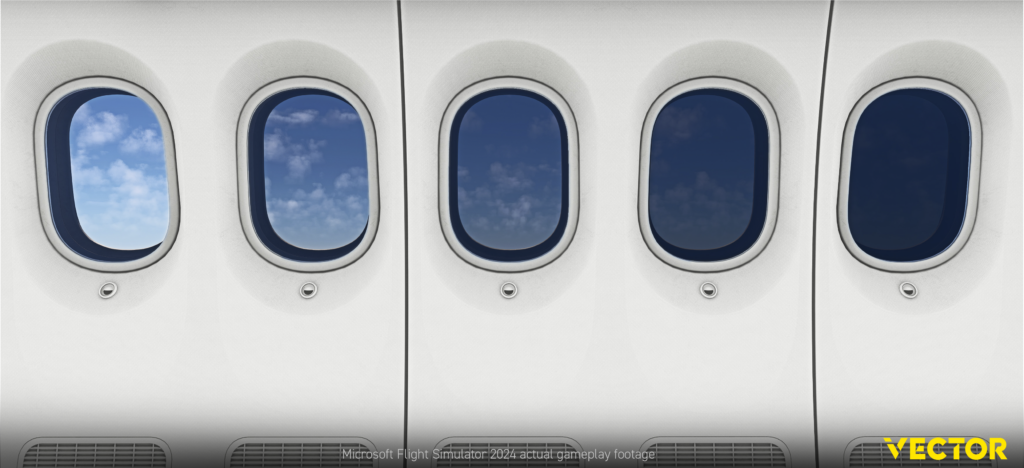 Auch die Kabine des virtuellen Dreamliner hat Vector noch nicht gezeigt. Hier gab es nur einen kleinen Teaser, welcher die ikonischen elektronischen Sonnenblender der 787 in Aktion zeigte.