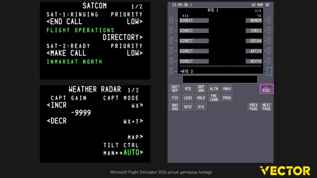 Die Simulation hört dabei aber nicht beim reinen Flugbetrieb auf, sondern geht darüber hinaus auch auf Systeme ein. So ist zum Beispiel auch das SATCOM im Flugzeug simuliert und kann benutzt werden. Und natürlich sind auch die verschiedenen Sicherungen und Wartungsseiten des Flugzeuges in der Simulation enthalten.